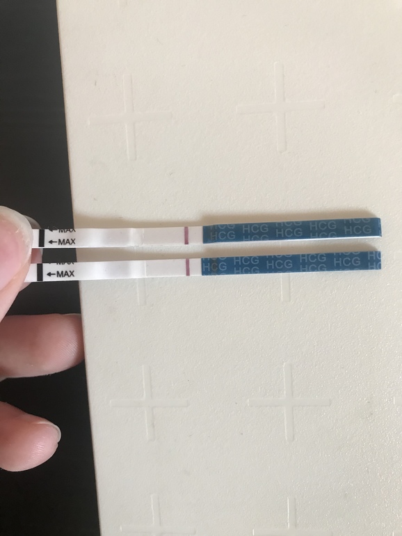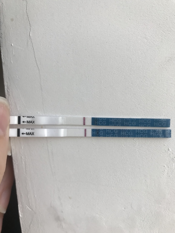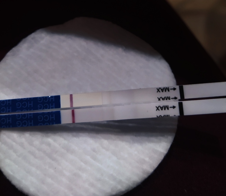 Когда б. не было (но почему-то я решила, что она, возможно, наступила😂), тесты показывали подобную полоску до м. Вплоть. Я кучу денег потратила на них😃