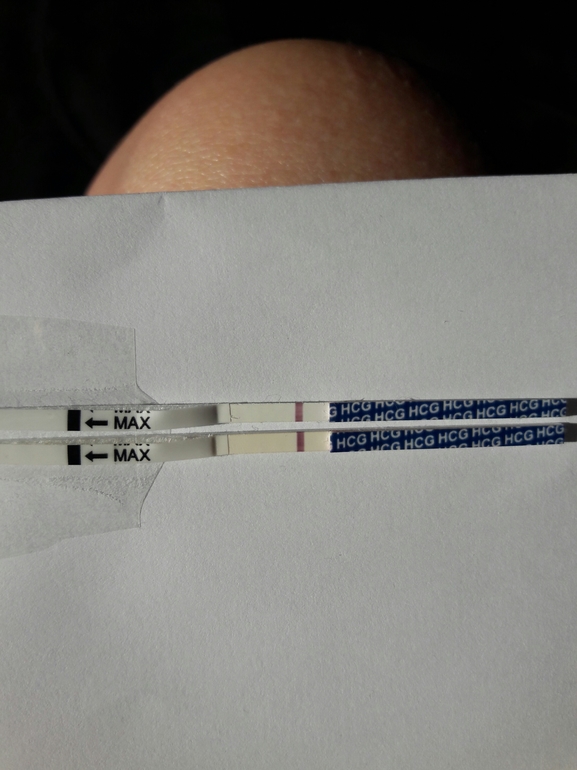Полоски были видни сразу но ооочень слабо. На нижнем ( на 9 дпо сегодня) в реале полосочка прям жирненькая, ровненькая, на верхнем тоньше ( 8 дпо ).