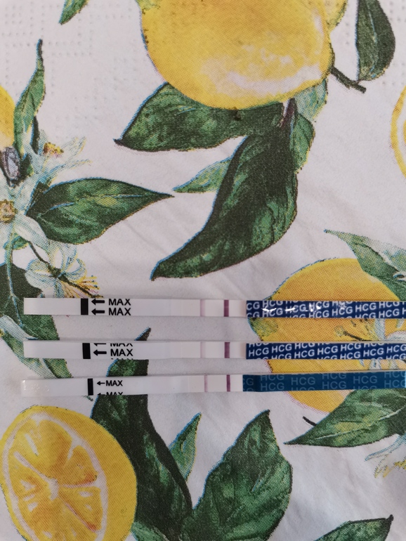 Ну и фото полосатых, сверху 2 (утро и обед) - это за 4 дня до задержки, 12 ДПО. Самый Нижний - это на 13 ДПО.