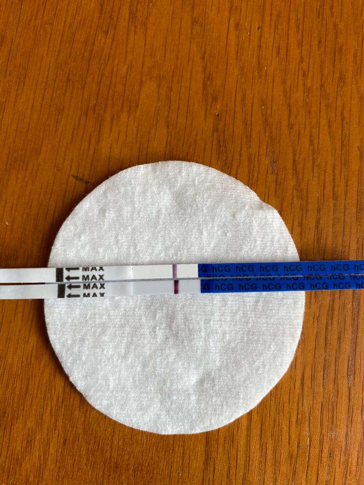 Цикл непостоянный , сегодня сделала тест, опять вижу вторую полоску , но ярче оне не стала . Не знаю что и думать . Вы видите ? Верхний тест вчера , нижний сегодня.