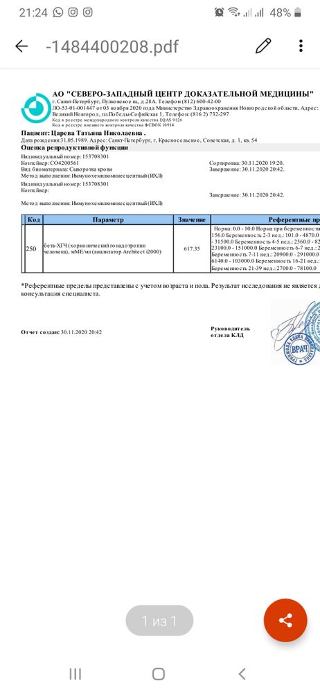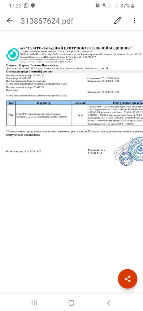 ДевАчки, пришли результаты хгч, перенос 17.11 был, РЕ сказала, записываться на узи, хочу услышать Вас