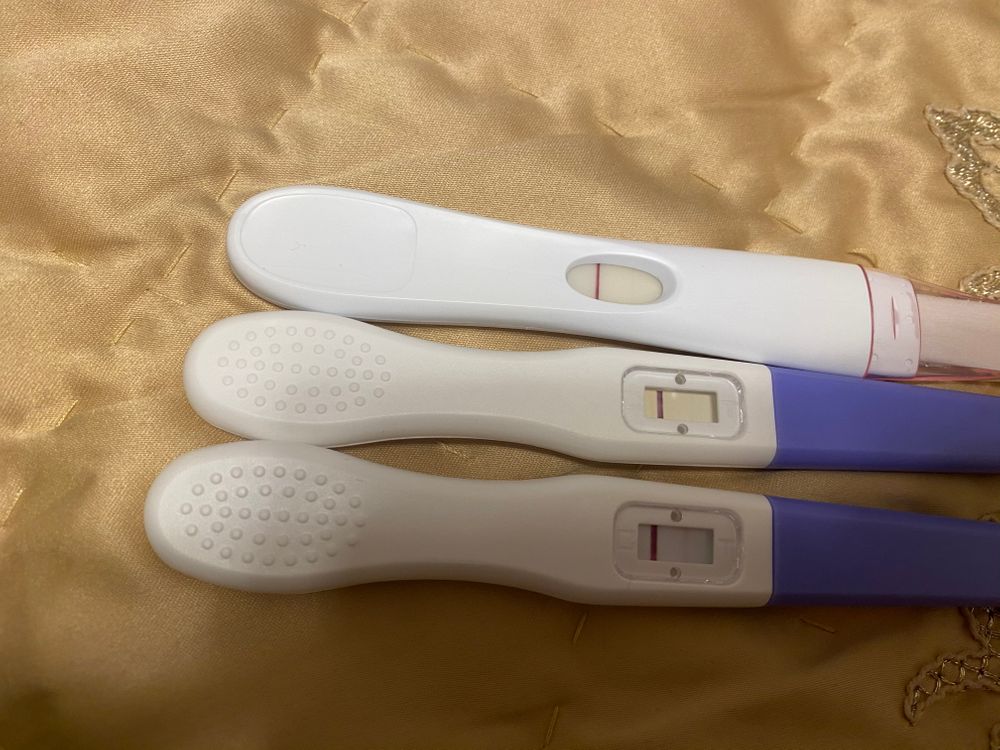 Была искусственная исеминация 26 ноября , обычно перед месячными набухает грудь и болеть , в этот раз грудь не набухла , но тянули яичники.решила сделать тест разных марок, я очень надеюсь , что уже оно😭😭😭