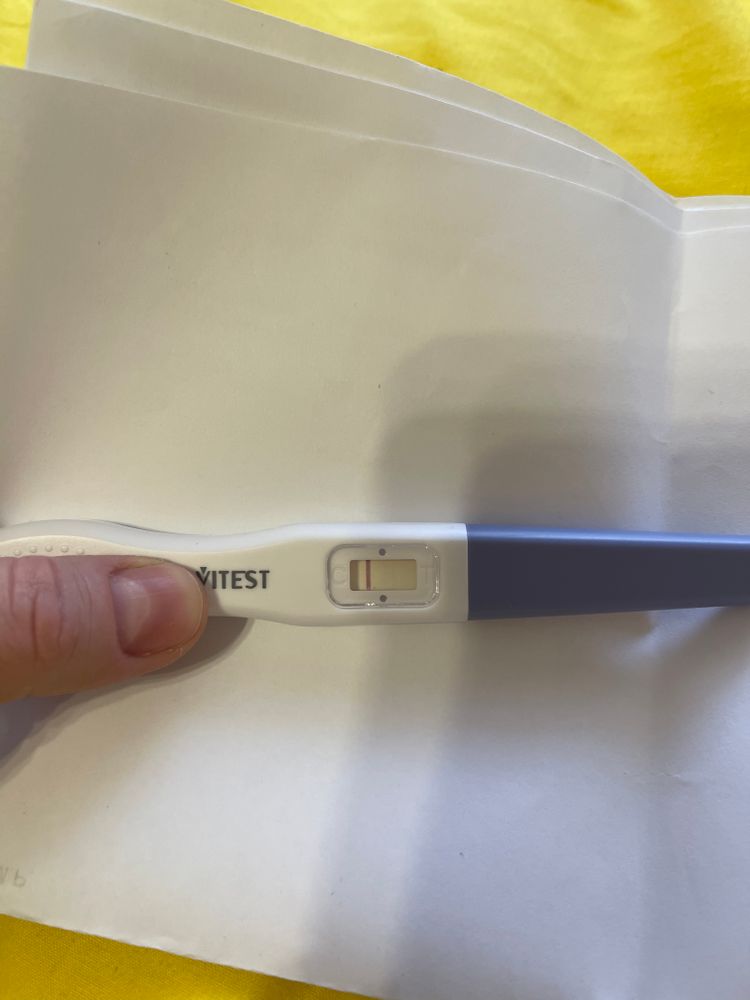Nelly Ajala, вот такой тест вчера на 2 день задержки. Это струйный Evitest.в жизни ярче чем на фото. Он у меня всегда раньше был либо кристально чистый либо беременный. Завтра иду сдавать кровь на ХГЧ. Если М не придут.