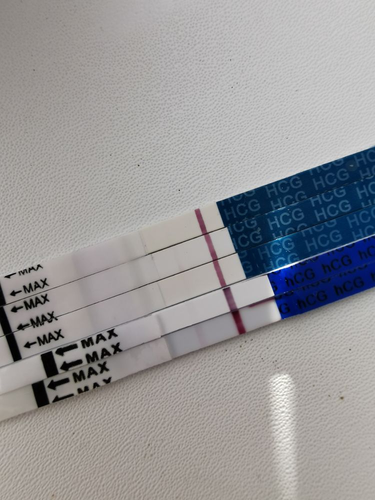 Сегодня снова тест. Он ярче чем предыдущие, это радует , значит хгч и вправду растёт. Надеюсь что на должном уровне. Завтра сдам снова, после завтра узнаем результат. И ещё завтра сделаю электронный тест, возможно покажет уже не 1-2 недели, а 2-3🙏. Ещё вчера были единоращовые выделения кремово-коричневые. Врач сказала, что это продолжается имплантация. Хоть бы всё сложилось🙏💕