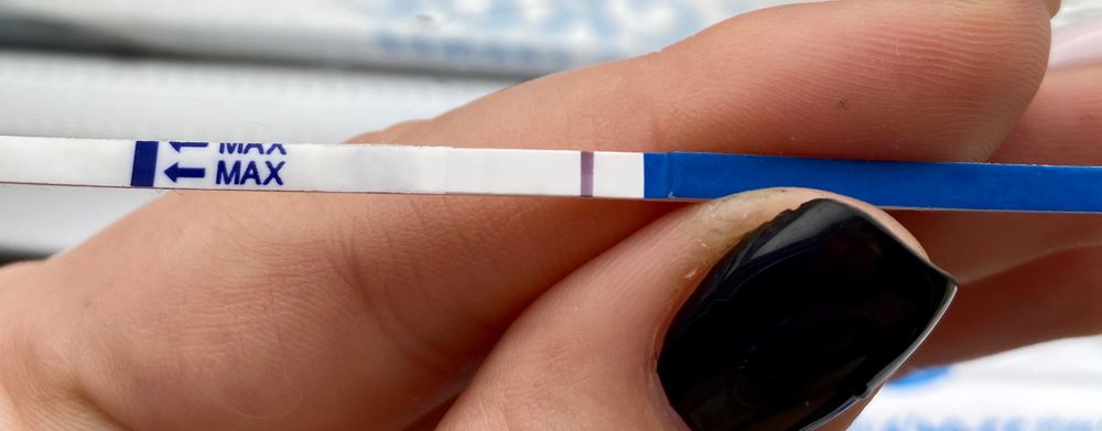 плохо конечно там видно, но я их делала до этого там прям пустота пустотная была. Цикл не супер регулярный последние полгода, овуляция поздняя всегда, когда была в этот раз понятия не имею. Но сегодня должны были быть М. Решила на последок замочить тест. А он вот такой.