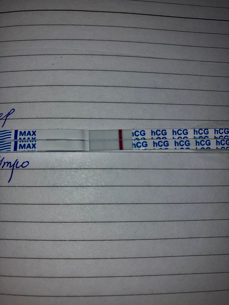 Евгения , я вчера делала с утра и днём вышло где то теста 3 все были чистые, вечером сделала увидела призрак, сделала с утра первым делом вылез призрак и вот сделала ещё 2 в разное время за сегодня и все призраки думаю через дня 3 можно уже электронный попробовать вот последний на фото сд
