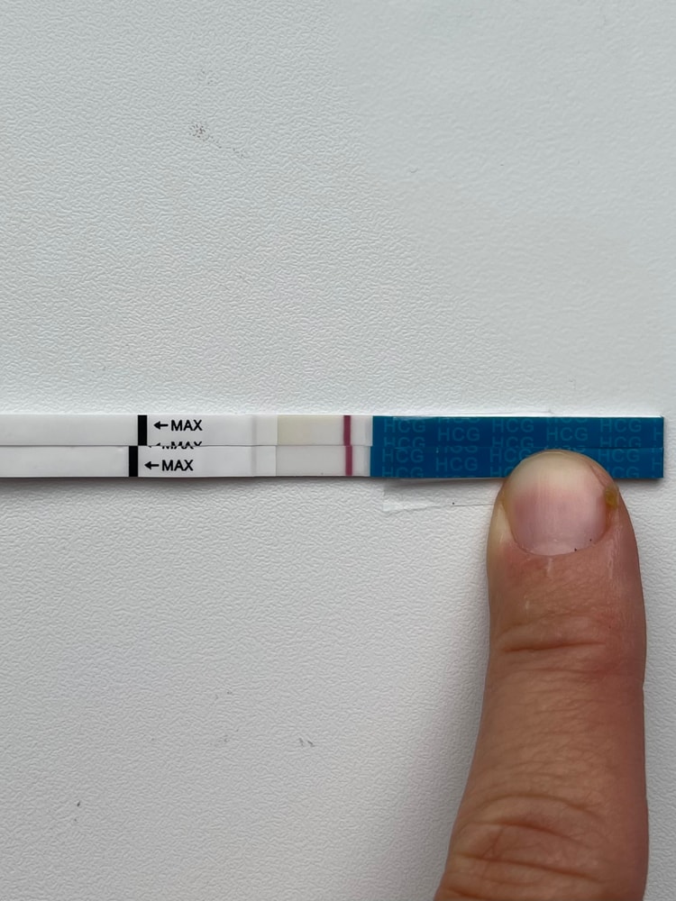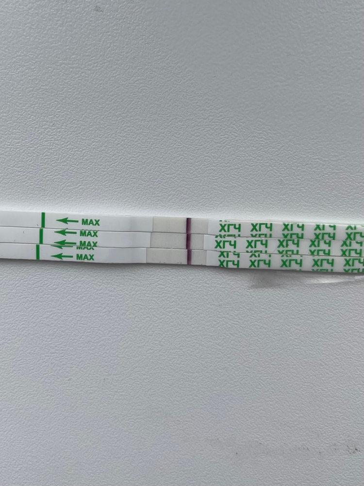 Тесты леди чек тоже показали слабую полосочку. А тесты клевер - один сразу вышел брак с какими-то вмятинами. Другой сперва показал вроде полоску, потом стал белым, а потом буквально рассыпался в руках. Ну как сказать… Бумажка отклеилась. Я даже сфоткать не успела. Но клевер и в клиническую беременность очень тормозил. Но розочки в этот раз жестят конечно.