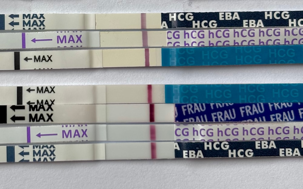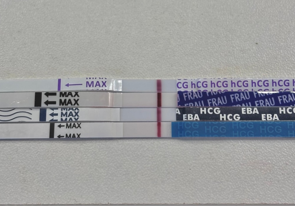 34 день цикла. месячных нет. Тут вчерашние тесты и нижние сегодняшние 👇🏻👇🏻👇🏻
