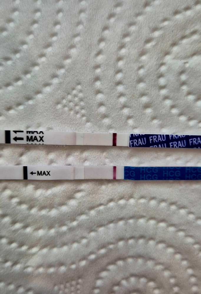 На розовом вижу тень, но лучше переделать завтра, если есть беременность - поярчает