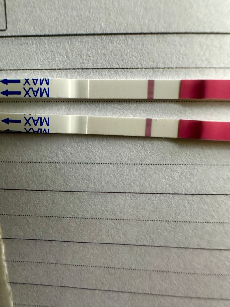 Гляделки. Есть полосочка? (Категория для тех, кто незнает свой ДПО)Верх утро, низ днем, в живую почти ниче не вижу сфотаю вроде виднеется что-то, как всегда выискиваю то чего нет?! Грудь продолжает болеть уже неделю, то больше то меньше но болит, иногда были покалывание в яичнике, а так все как всегда