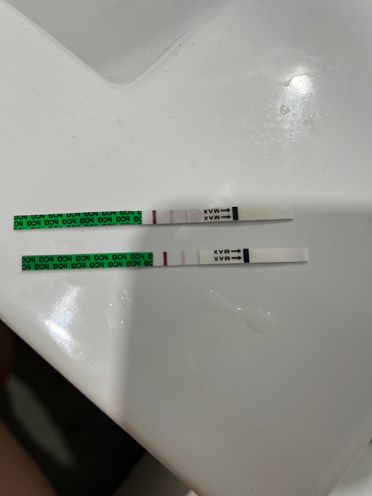 У меня за неделю до месячных такие были полоски. И Реально была беременна.Так что это явно беременность.