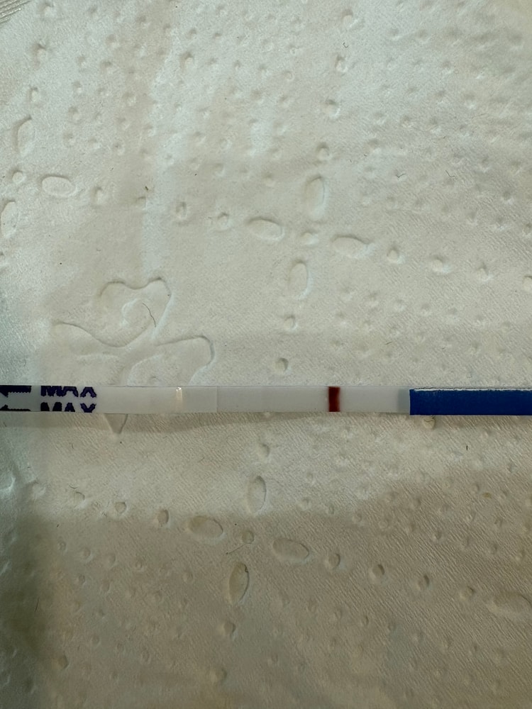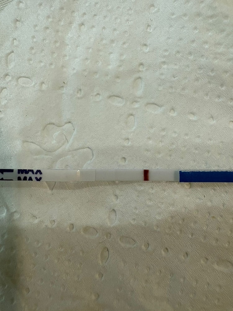Цикл нерегулярный. Если считать по среднему то до месячных ещё шесть дней. Пью дюфастон. Сделала тест потому что болит грудь и дует живот как перед месячными чувство