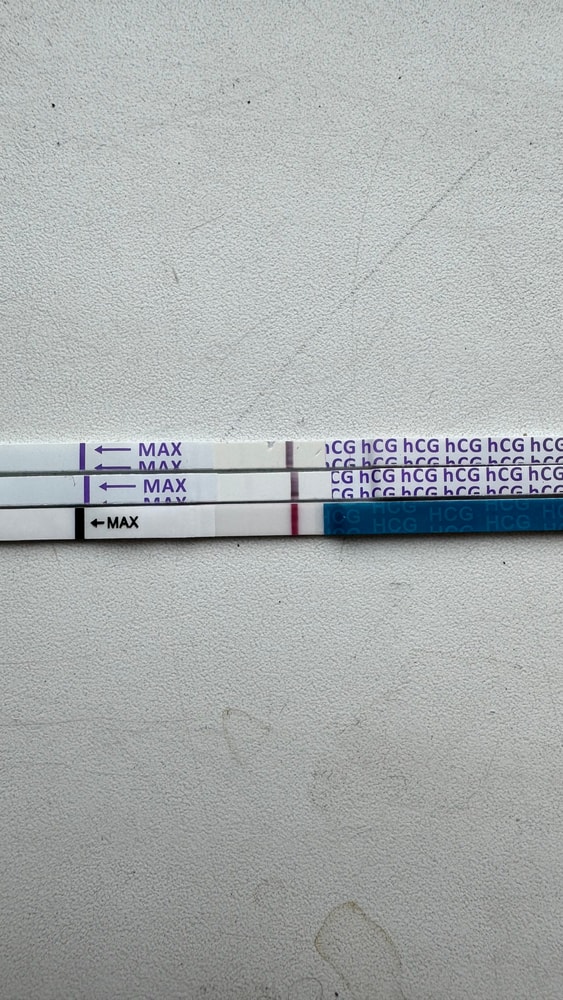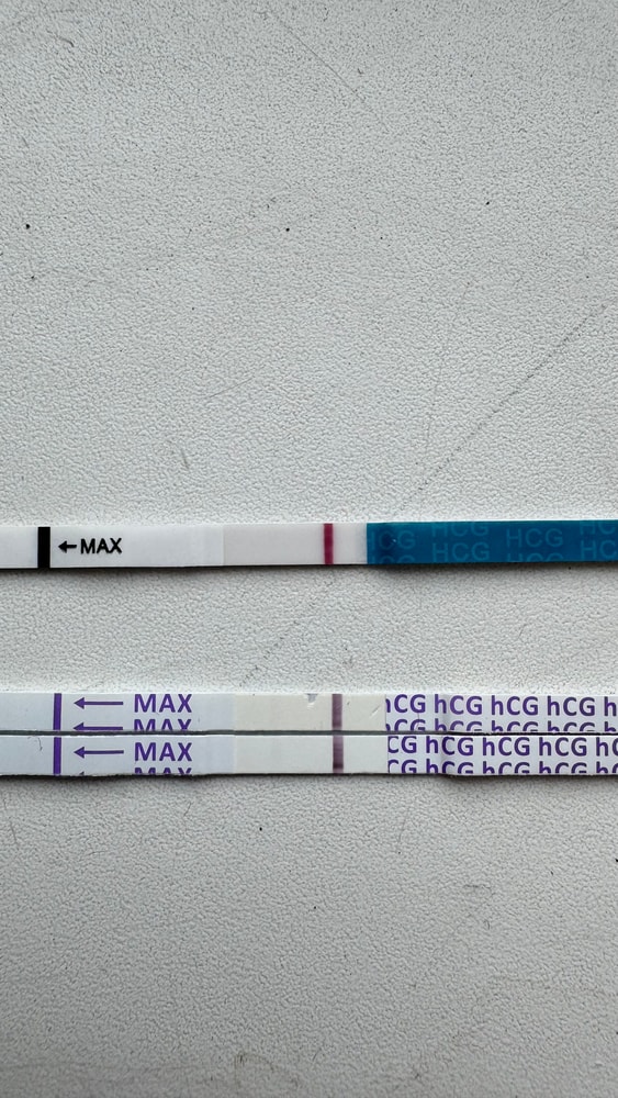 На синем слабее, у меня в беременности первые полоски были лучше видны на Феми на Эви как у вас было, а черкз неделю уже все показывали ярко