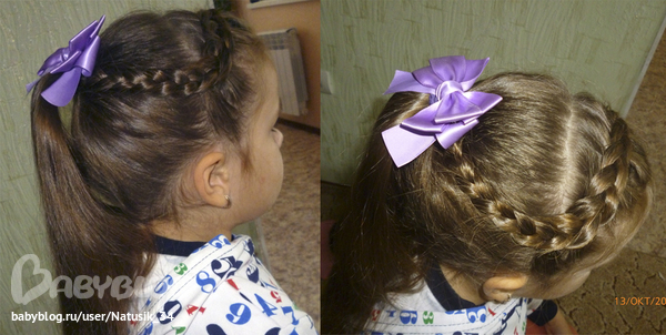 Как-то, в очередной раз заплетая дочу в садик, придумалась мне новая прическа. Решила поделиться с вами, может кому-то пригодится идея. Показываю как делается: