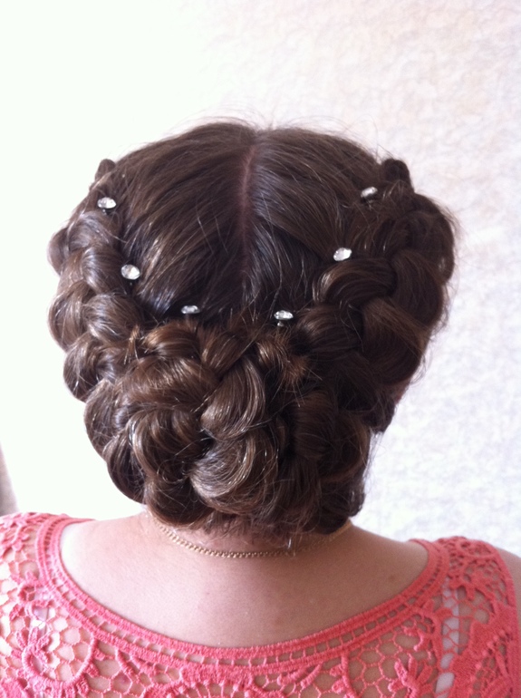 делаем начес . все заливаем лаком ! по бокам волосы подкалываем невидимками . а сама коса это 3 пряди волос и 1 лента . можно в ютьюбе посмотреть видео как это плетется . заплели значит такую косу и немного ее растребушили , вытянули пряди . чтобы она смотрелась объемнее и невидимочками подкололи . вот и все !