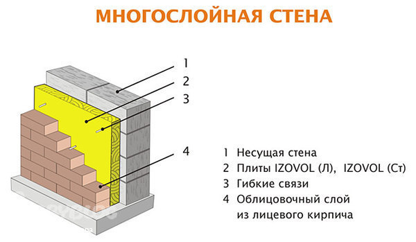 В основном все облицовывают дом кирпичем, поэтому рассмотрим эту трехслойную конструкцию. Для таких стен подходит ROCKWOOL Кавити Баттс Теплопроводность расчетная 0,39-0,41 Вт/ мК, плотность 45 кг/м.куб