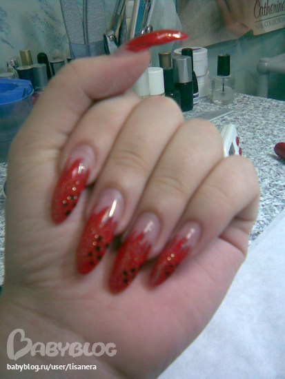 Фу((( Мне не понравились эти когти да и вообще носить такие когди большой грех. Я никогда не носила и не буду. Люблю окуратные ухоженные руки и ногти.