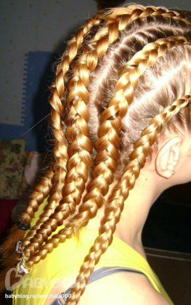 Классно! Тебе кто-то плел, или ты сама? Я как-то в отпуске тоже себе много косичек наплела)))Ну не сама, конечно. Было прикольно, только потом волос много выпало(((