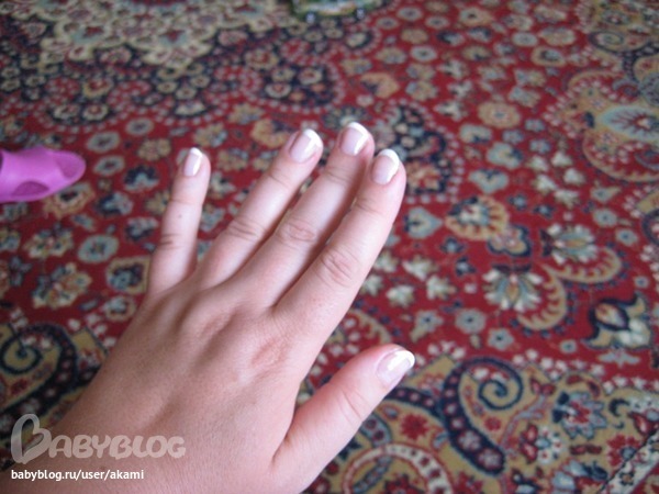 Показываю вам - извините, сами ногти не ахти сегодня, но простота использования и результат приятный. Уверена, что муж не отличит от салонного варианта.