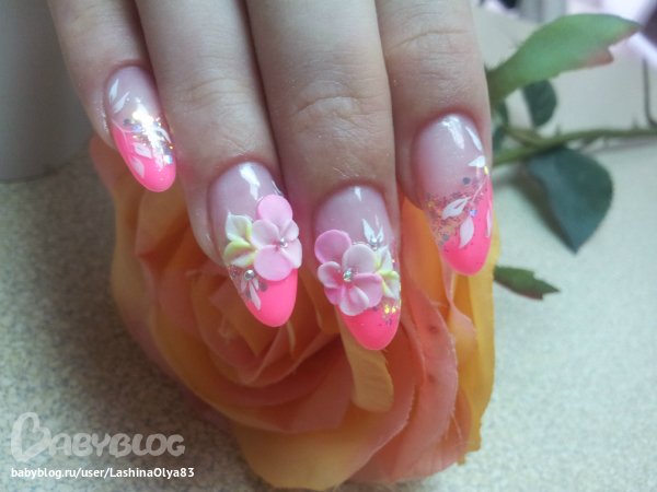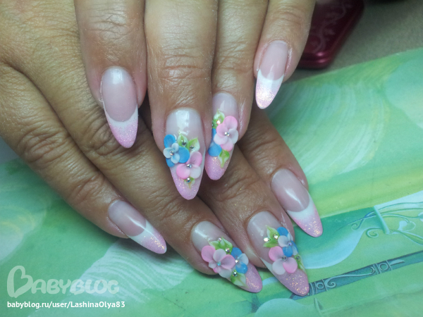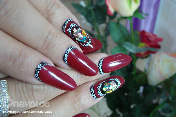 Если просто восхититься тем, что человек может такие узоры и цветы рисовать миниатюрные то да, я восхищаюсь. Классно же имеь руки не из "пятой точки". Но к тким рукоам бы еще и вкус не помешал. Я бы никогда не согласилась на такой маникюр, бесвкусно, аляповато. Это мое мнение.