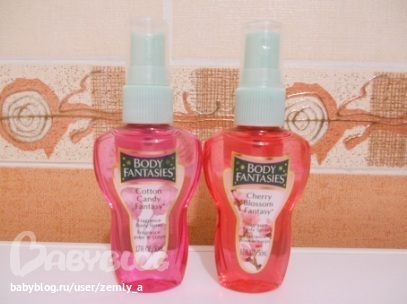 слева с запахом конфеток, справа вишневый цвет. Оба запаха сладкие. я вообще не любительница таких запахов, но так захотелось пахнут вкусно и сладенько. И эти спреи самое то, стойкость очень хорошая, получше даже некоторого парфюма.
