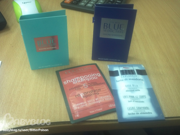Перевязанное коричневым бантиком - подарок для моего любимого мужа :) Образцы крема, чыворотки и умывалки.