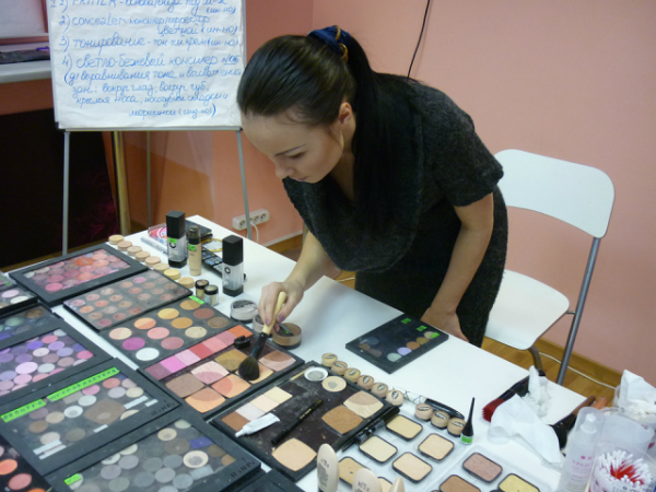 На практике отрабатывались техники нанесения casual, дневного, вечернего и свадебного макияжа