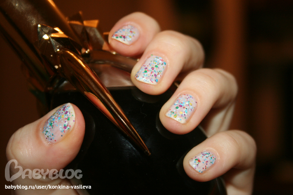 Да эти лаки лучше на подложку наносить, а то когда блестки в несколько слоев то не очень