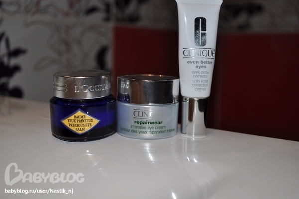 Мой фаворит однозначно L`occitane. Клиник, так громко везде рекламирующийся, от темных кругов не впечатлил вовсе.