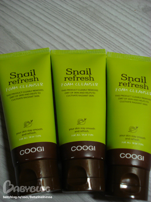 COOGI Snail Refresh Foam Cleanser сделана на основе экстракта слизи улитки. Секрет улитки содержит необходимые для кожи аминокислоты и витамины. Также в его состав входят аллантоин, коллаген, витамины А, С, Е, В6, В12, эластин, хитозан, фермент протеаза, гликолевая кислота, а также полный набор аминокислот. Он оказывает на кожу сильное защитное и восстанавливающее действие, способствуют синтезу новой соединительной ткани, прекрасно увлажняет, нормализует состояние жирной кожи, защищает от преждевременного старения, а также борется с уже существующими морщинами.