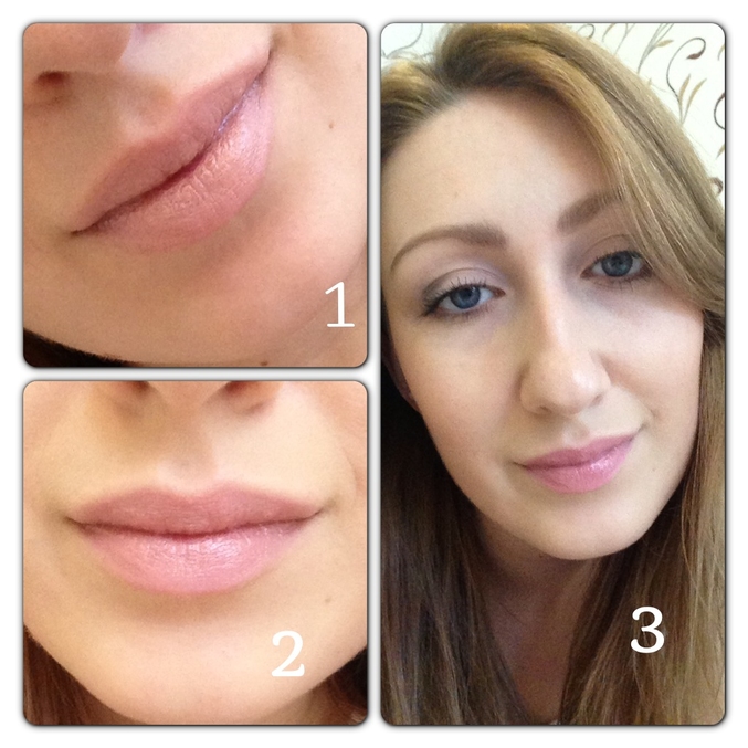 3. Бальзам + помаду наносила кисточкой + более темный блеск для губ.
