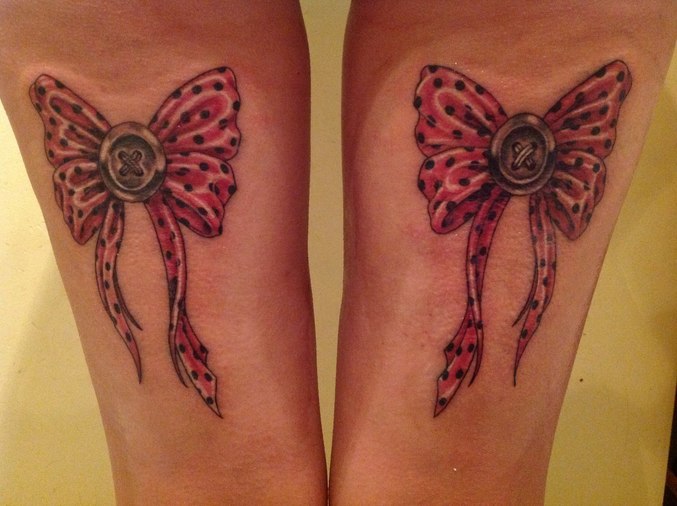 сначала подумала что это на икрах - думаю "ух ты, прикольно", милые бантики..
