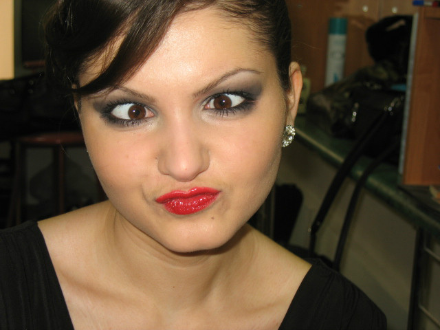 мда уж... я в шоке над коментами.... тактичнее надо быть, девочки. не видно разве, что это ОБРАЗ? или девочка в 16 лет только гигиенической помадой должна пользоваться? она же не в школу на уроки пришла с таким макияжем...