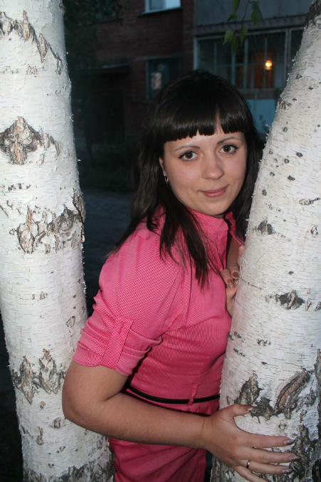 На фото у шкафа старше всего, у березы помоложе. Во взгляде есть жизненный опыт, а не ветер в голове, серьзная девушка, 26-28лет на мой взгляд.