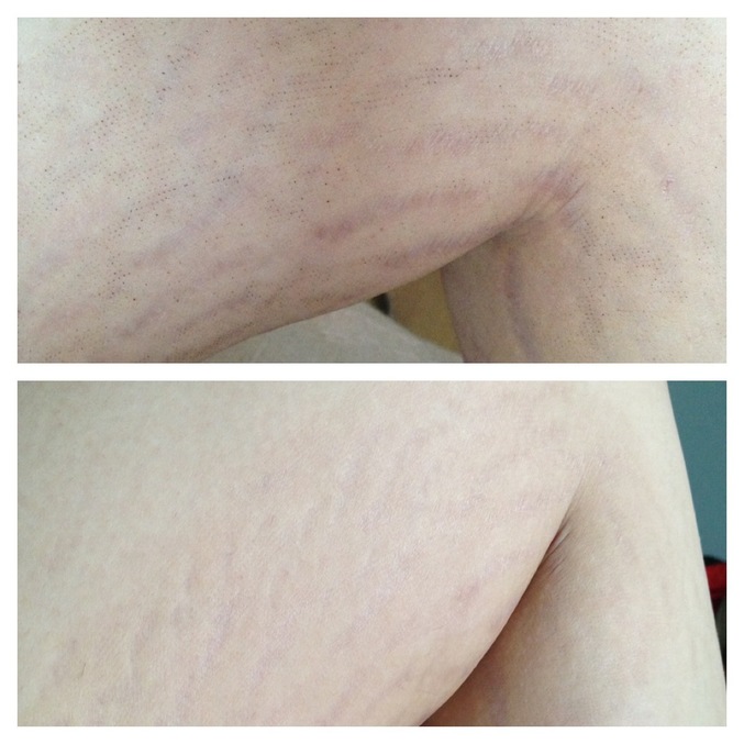 даже не верится. краснота полностью прошла, растяжки стали менее заметны. на фото результат очень заметен. да и на ощупь они стали не такими глубокими.