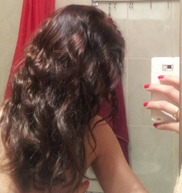 Это после помывки и без укладки. Т.е. эффекта прямых волос нет. Да, они меньше пушатся, но не насколько чтобы я радовалась результату. Потом уже узнала что Коко очень слабый и эту процедуру надо повторить как минимум раза 2, чтобы кератин накопился. А если волос как у меня кудрявый, то лучше использовать другую марку кератина, посильнее.