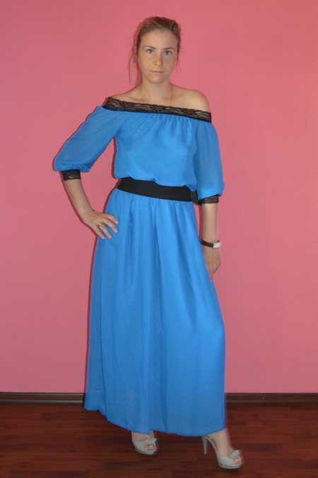 Я бы сюда добавила босоножки на тонких решешках, на каблуке. И да, платье коротковато, может стоить нарастить низ кружевом?