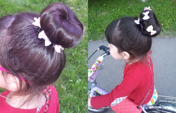 Мастер-классИтак хочу поделиться с вами как я делаю "пучок"или "калачик"с помошью гетров.Попыталась пошагово выложить фото.Извиняйте за качество,фоткала на телефон.В качестве модели моя Бусинка:-))