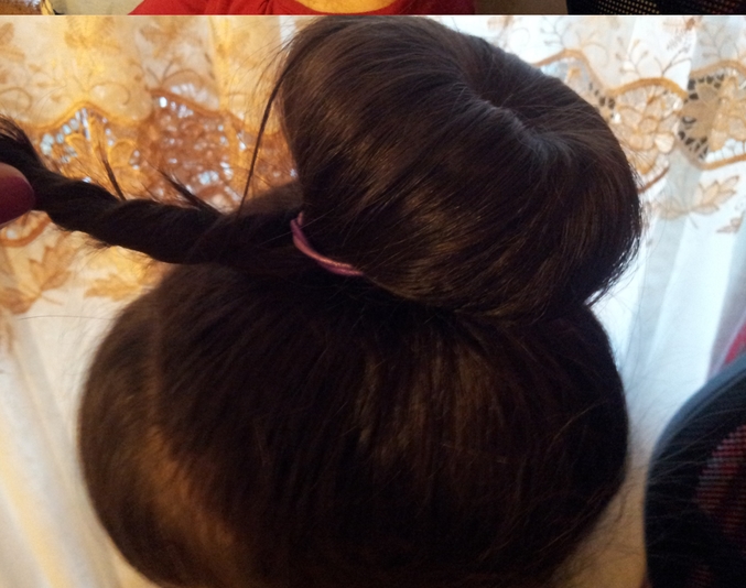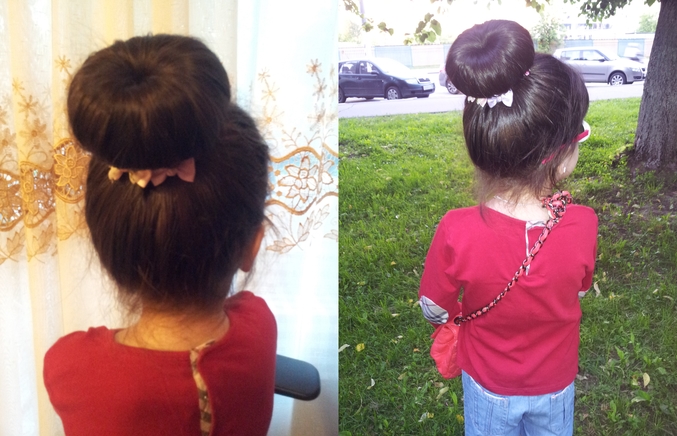 А также можно на пучок намотать шарфики красивые,или надеть специальные штучки для пучков,можно цветок прикрепить красивый.Всё зависит от вашей фантазии.Буду рада,если вам понравилась моя работа:-)P.S.Еще парочку фото с пучком:-)))