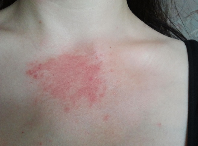 Уход за лицом и шеейСлучилась такая неприятность))), покусали комары на шее (комары сейчас у нас ядерные, детей кусают- так распухает на несколько см в диаметр), чесалось жутко, мазала фенистилом, через пару дней укусы стали проходить, но стала гореть кожа в районе ключицы- и вот это вылилсоь в проблему.