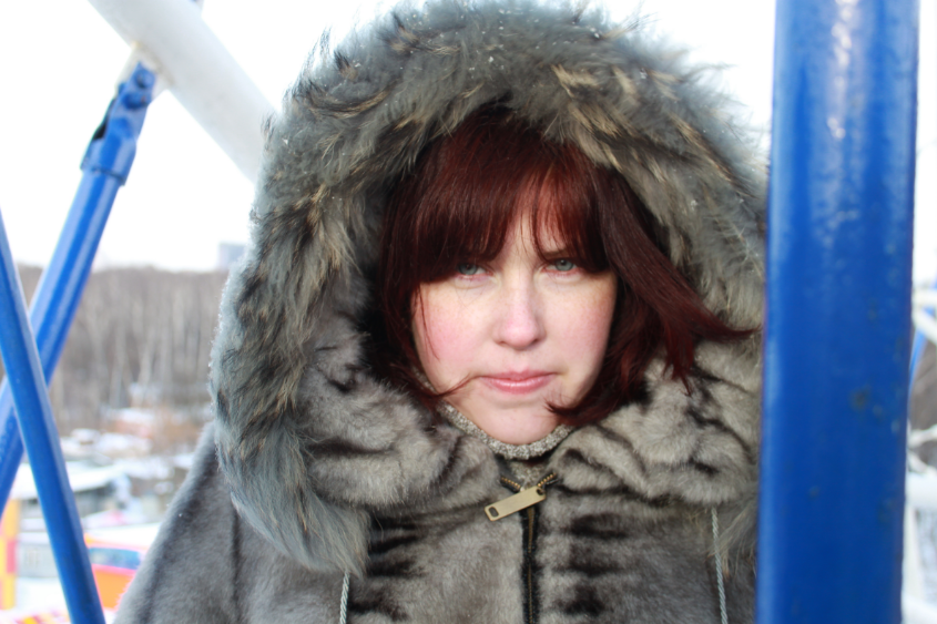 длинные волосы без челки, цвет никак не блонд и не рыжий... по совсем понятно, что за цвет на фото с капюшоном, но мне нравится именно он...