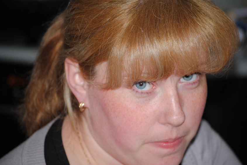 Без челки и темный блонд или светло русый. Избегайте красного пигмента (рыжины). Делает цвет вашего лица красноватым.