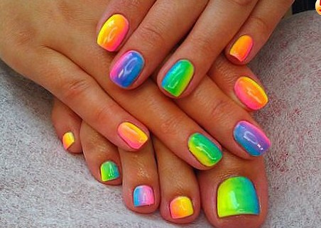 лаки лучше из 1 серии, насыщенность пигмента разная. Делала 2х цветный горизонтальный.. тут цветов много, а так техника простая...