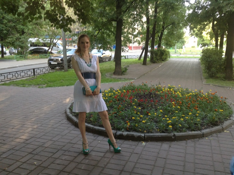 Карина, платье очень классное, я тоже за то, чтобы убрать утяжеляющие его пояс с бусами и обувь какую-то полегче, волосы, наверное, лучше распустить