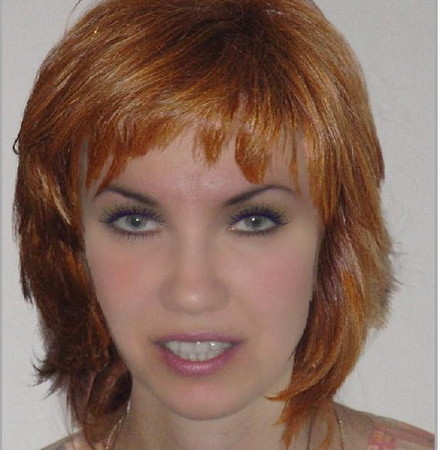 вообще если представить в живую,то лучше в темном цвете будет,какой-нибудь шоколад или еще что-нибудь.просто сделать поярче цвет,чтобы блестели волосы.и без челки.
