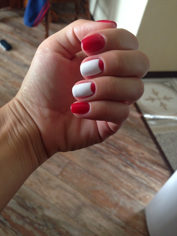 А лунный как делается? Сначала ноготь полностью красным покрывается, а потом сверху через трафарет белым?Как-то ногти с лунным выглядят как будто очень много лака на них, может, конечно, свет так падает