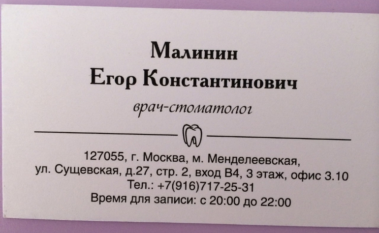 Модераторы, пожалуйста, не сочтите этот отзыв за рекламу. Я искренне хочу поделится контактами хорошего специалиста, тем более что меня только недавно несколько раз спрашивали, где я лечу зубки...