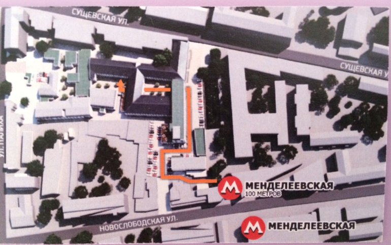 Итак, клиника находится в 2-х минутах ходьбы от метро Менделеевская, вот тут