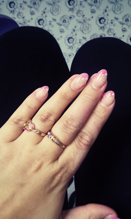 Свои укрепляла гелем,ну да согласна,что кривовто получилось,ещё указательный палец не так заострен, да по фиг,близко мои руки ни кто не рассматривает,с далека не видно