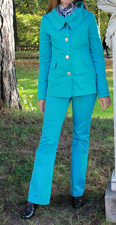 Оцените образЕсть у меня любимый костюм - брюки и куртка-пиджак бирюзового цвета. Знакомая, увидев меня в нем, раскритиковала, что "слишком много одного цвета", потом добавила: "не, ну если тебе нравится...". А я мнительная такая, вот и засомневалась: неужели теперь костюм одного цвета стал дурным тоном? Фото под катом: